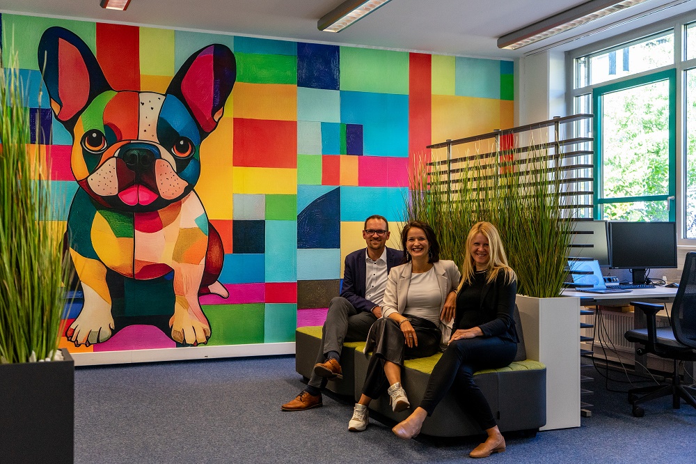 Damit in den Räumlichkeiten auch in entspannter, offener sowie in konzentrierter Art und Weise gearbeitet werden kann, wurde der Eingangsbereich als gemütlicher Austausch- und Pausenbereich neu gestaltet. Es wurde eine offene Kaffeebar mit Sitzgelegenheiten eingerichtet und ein zusätzlicher Besprechungsraum für kreative Gruppenarbeiten oder übergreifenden Austausch installiert.
